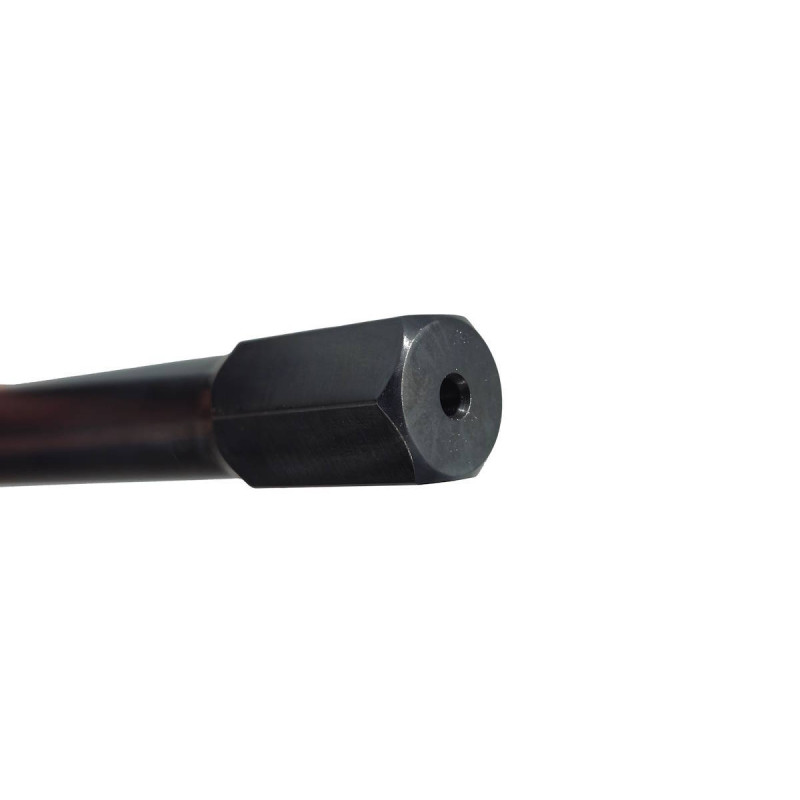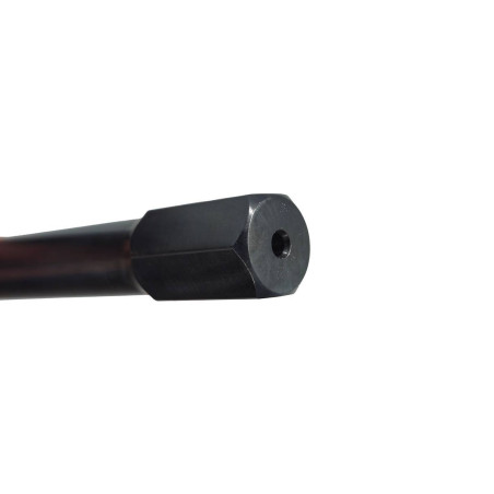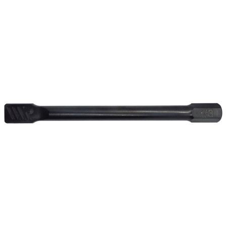 - 19mm hex nut end. Not flanged, so can run multiple spanners/levers.